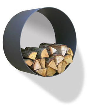 The wall mounted wood storage unit clears floor space and puts an end to the unpleasant mess associated with log storage.