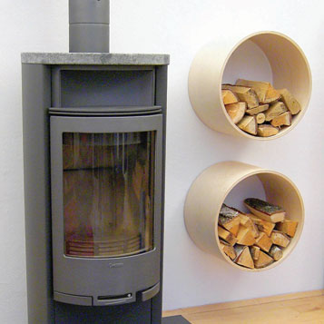 The Rack wood storage system is an aesthetic, smart and modern helper in storing wood for your wood burning stove or fireplace. The wall mounted Rack system makes storage of your logs convenient, clean and accessible. Placing a number of Racks near your fireplace creates a unique ambience to that space.